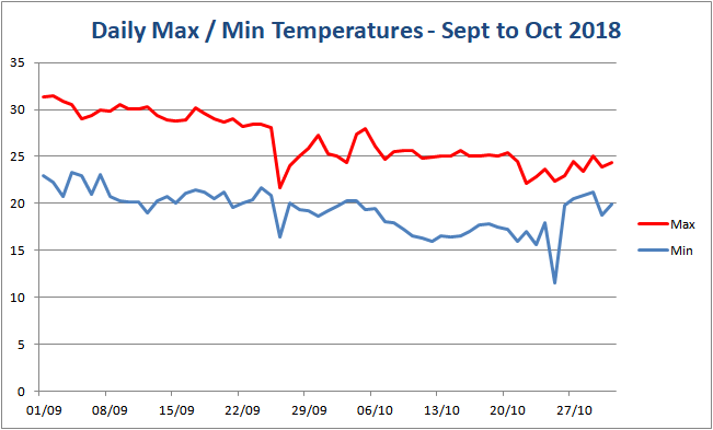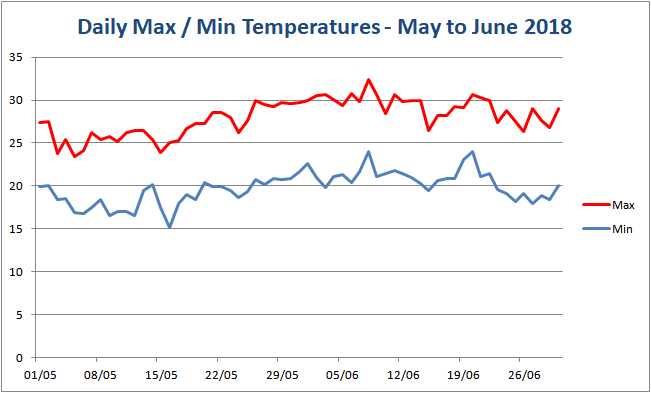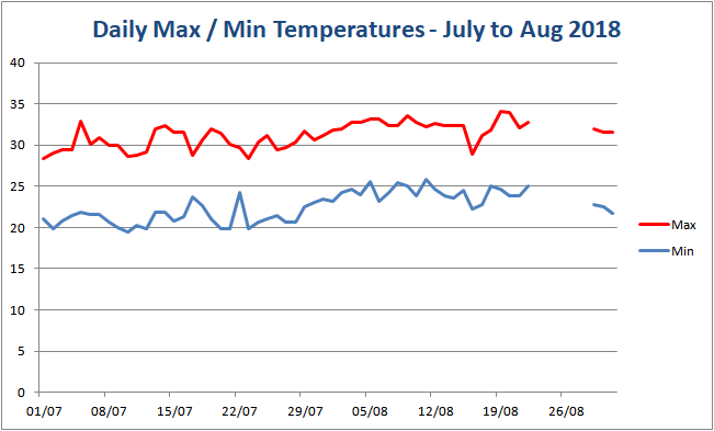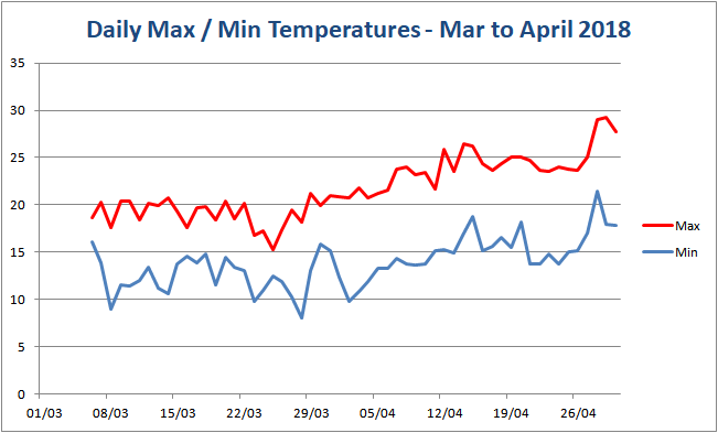 The following charts show the "shade" temperatures that we have recorded at our house from March 2018.